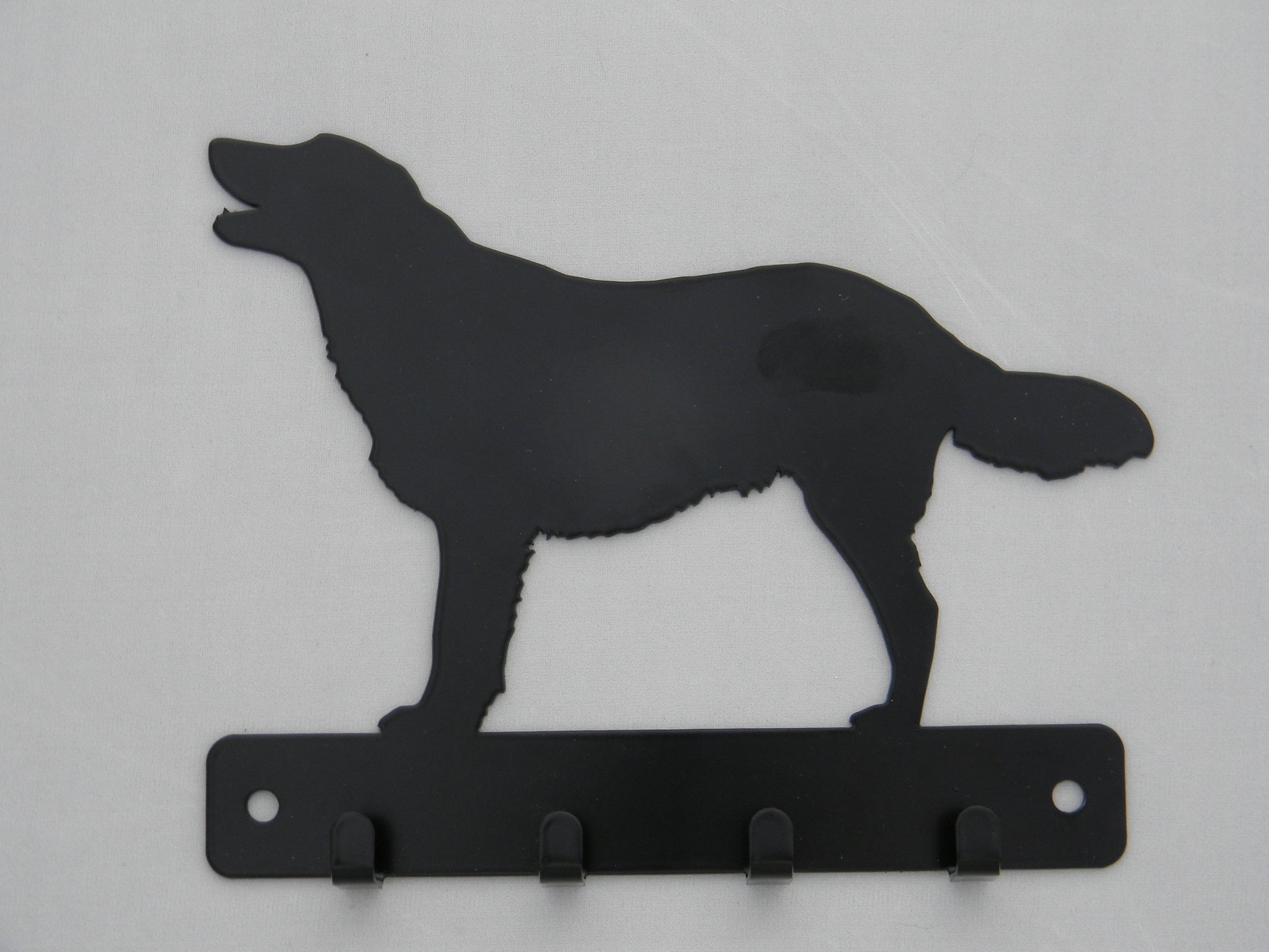 Our Leash holders are cut out steel and then powder coated black, the leash holder is 8”x7” and screws are NOT included.